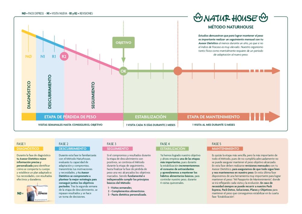 El proceso de adelgazamiento Naturhouse se establece en tres fases: